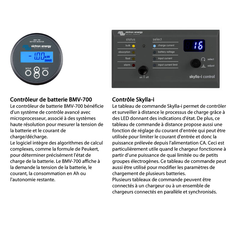 Le Skylla-i est livré avec une sonde de température de batterie. Lorsque la température augmente, la tension de charge diminue. Particulièrement recommandé pour les batteries étanches.