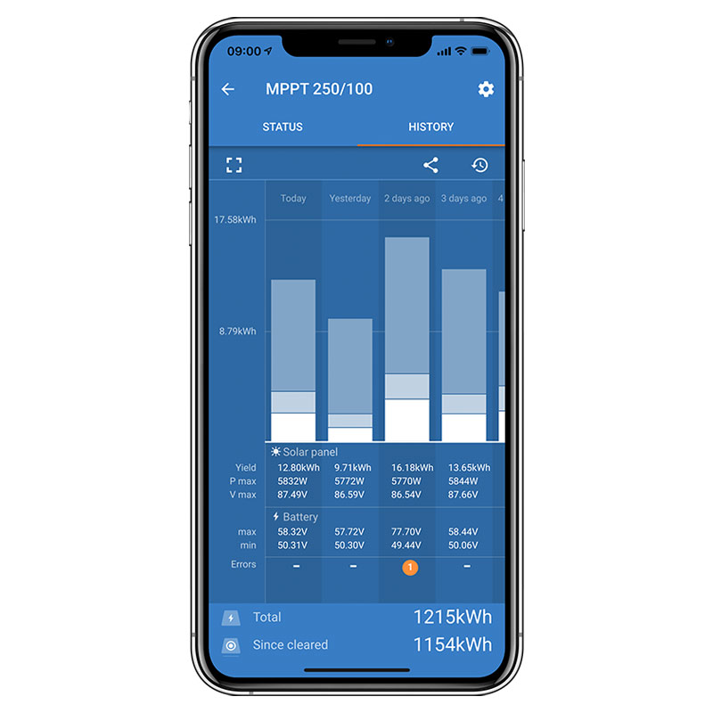 La solution sans fil pour configurer, surveiller, mettre à jour et synchroniser les contrôleurs de charge SmartSolar.
