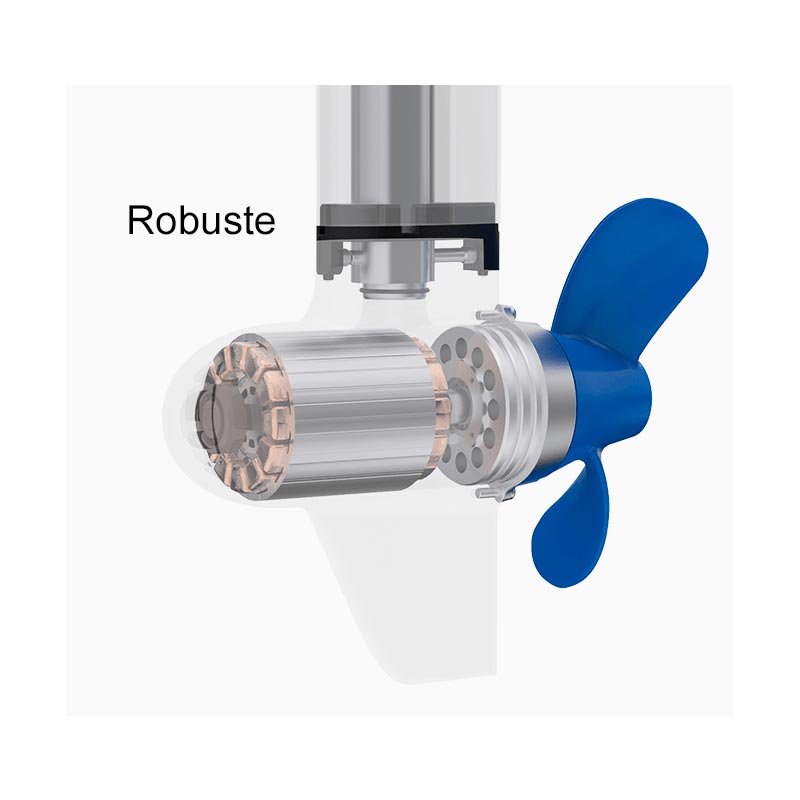 Grâce à son entrainement direct, le peu de frottements et le faible nombre de pièces en mouvement, le moteur électrique hors-bord NAVY 3.0 est très fiable, efficace et ne nécessite aucune maintenance.